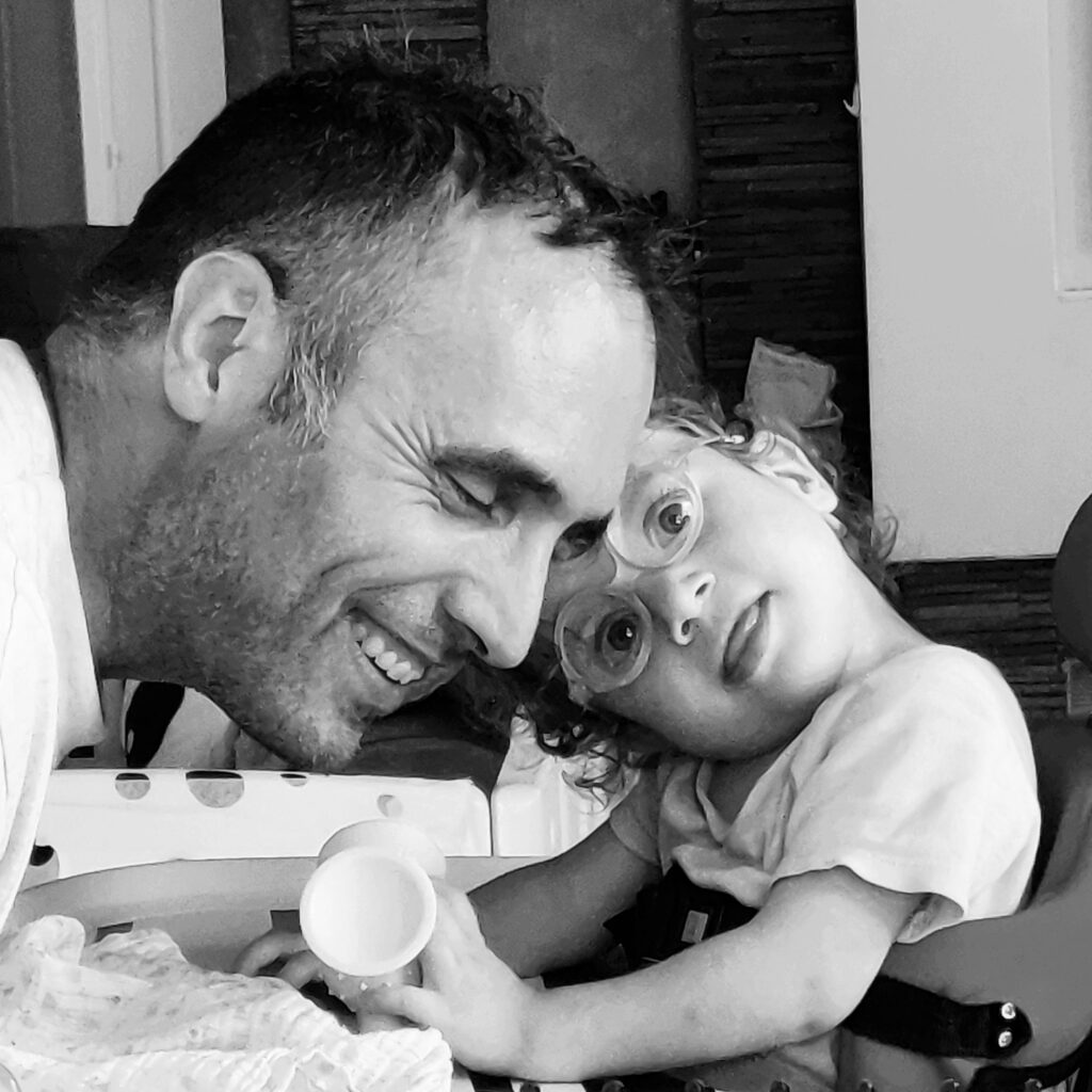 Moi c’est Mathieu, la quarantaine, marié et papa de 4 enfants dont une petite princesse partie rejoindre les étoiles beaucoup trop tôt mais aussi d’une petite poupée polyhandicapée.