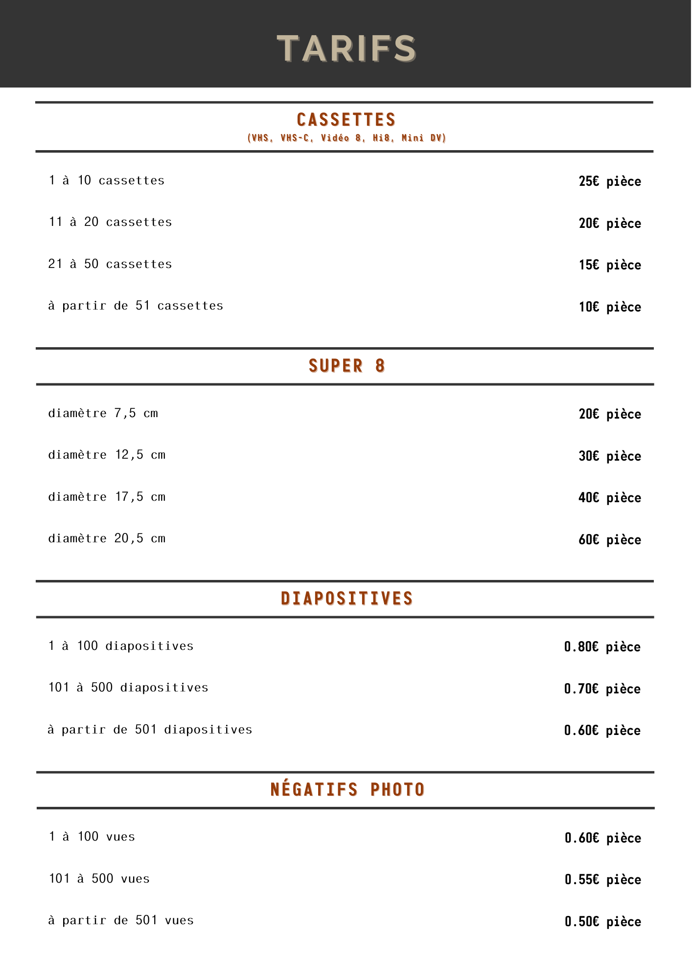 Cassettes VHS, VHS-C, Vidéo 8, Hi8, Mini DV